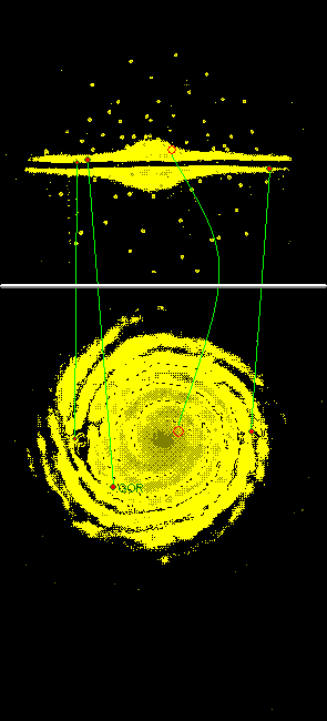| Hauptsystem: GONDERVALL Doppelsonnensystem mit einer großen violetten Hauptsonne, einer mittelgroßen dunkelbraunen Umlaufsonne und 7 Planeten. Standort: Zentral Ost Oben | ![]() |